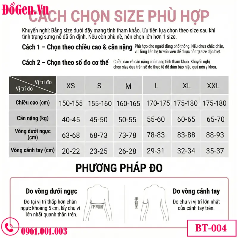 bảng kích thước Áo Gen Nịt Bắp Tay Sau Hút Mỡ Thẩm Mỹ – Giải Pháp Định Hình Cánh Tay Thon Gọn Hiệu Quả